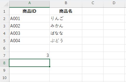 | A列(商品ID) | B列(商品名) |